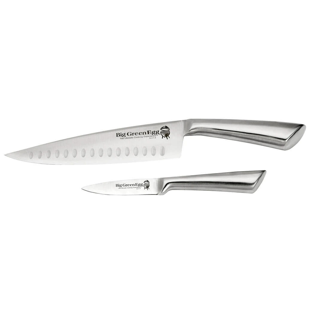 De Big Green Egg messenset bestaat uit een koksmes en een officemes. Het koksmes heeft een lemmet van 20 cm en het officemes een lemmet van 9 cm. Gebruik de set voor het snijden van groenten en vlees voor de op de barbecue.