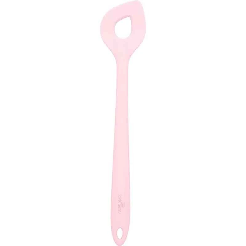 De Birkmann roerlepel met gat is vervaardigd uit zachtroze BPA-vrij silicone. De roerlepel heeft een lengte van 29,5 cm. Gebruik voor het doorroeren van bijvoorbeeld soepen, sauzen en beslag. Door het gat in het midden van de lepel roert u minder zwaar en wordt beslag luchtiger.