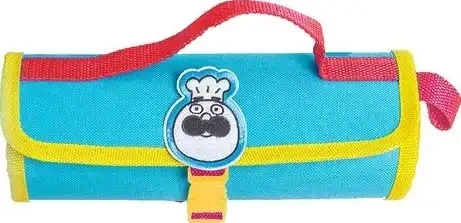 De Chefclub foedraal met keukenhulpjes bestaat uit een set met een garde, spatel, lepel, kwast en de wikkel. De keukenhulpjes hebben vingerbescherming. De foedraal heeft vrolijke kleuren en sluit eenvoudig met een gesp. Gebruik de foedraal om je kinderen te leren omgaan in de keuken.