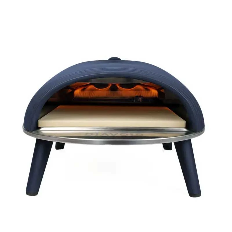 De Navy Blue, donkerblauwe, Diavolo gasoven van Delivita maakt van uw achtertuin een ware pizzeria. Dankzij de unieke vormgeving wordt warmte optimaal verdeeld en behouden, waardoor de oven binnen 15 minuten zeer efficiënt de juiste temperatuur bereikt. Geniet van heerlijke gerechten uit een traditionele steenoven, en het gemak en de veiligheid van het moderne ontwerp.
