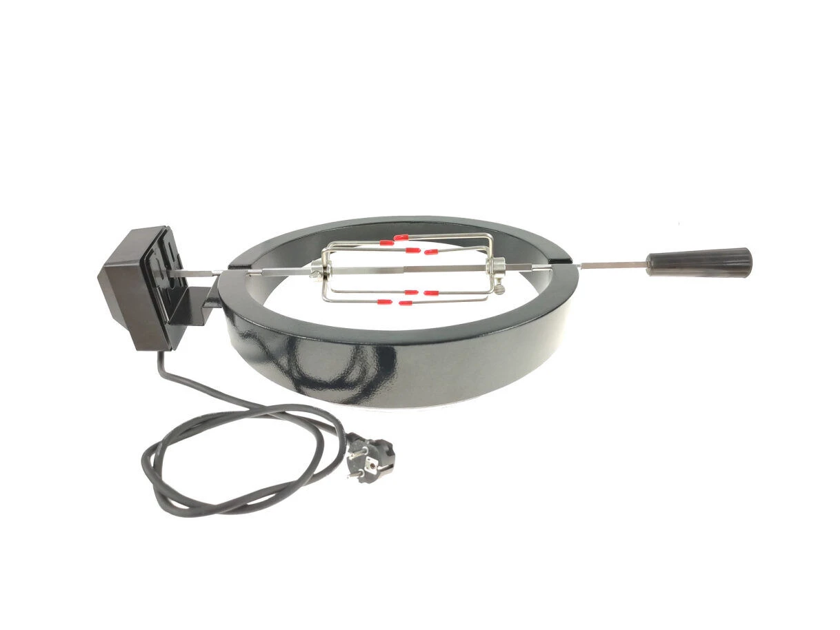 De Keij rotisserie is een barbecue spit gemaakt voor de Keij Kamado. Met deze rotisserie maakt u op een makkelijke manier kip, rollade of andere gerechten boven uw barbecue. De ring is gemaakt van staal en het spit van roestvrijstaal zodat deze gemakkelijk schoon te maken is. Deze rotisserie is te gebruiken in combinatie met 25 inch kamado’s, combineer de rotisserie met de grillmand.