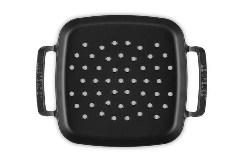 De Le Creuset BBQ Outdoor grillkorf is vervaardigd uit matzwart geëmailleerd gietijzer en heeft een lengte en breedte van 30 cm. De grillkorf is geschikt voor gebruik op bijvoorbeeld de barbecue of open vuur tot een temperatuur van 450°C. Gebruik voor het grillen en roerbakken van diverse kleinere ingrediënten.