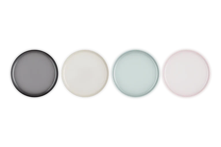 De ontbijtborden van Le Creuset zijn gemaakt van geglazuurd aardewerk, en zijn beschikbaar in een set van 4 borden met verschillende kleuren. Elk bord heeft een diameter van 22 cm.