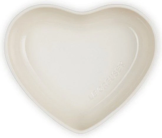 Het diepe bord van Le Creuset is gemaakt van geglazuurd aardewerk, uitgevoerd in wit en heeft de vorm van een hart. Het bord is voorzien van een glanzende afwerking en heeft de afmetingen van 20,2 x 16,9 x 4,5 cm.