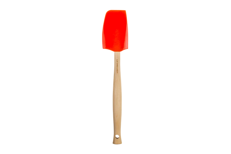 De Le Creuset Premium Medium spatel is gemaakt van hout en heeft een vulcanique siliconen blad, waardoor de spatel niet krast. De spatel heeft een platte en bolle zijde en heeft een lengte van 28,5 cm. De breedte van het blad is 5,8 cm.