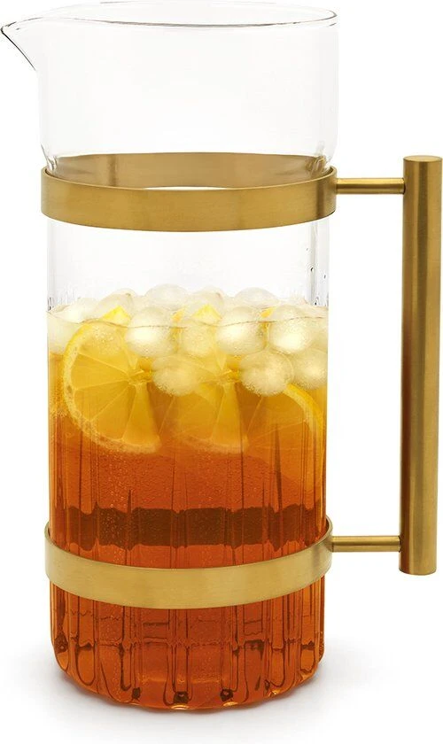 De Leopold Arinto karaf is gemaakt van sterk en hittebestendig borosilicaatglas en voorzien van goudkleurige roestvrij stalen accenten. De karaf heeft een inhoud van 1,4 liter en is geschikt voor het schenken van water, cocktails, ijsthee, sangria en/of andere drankjes.