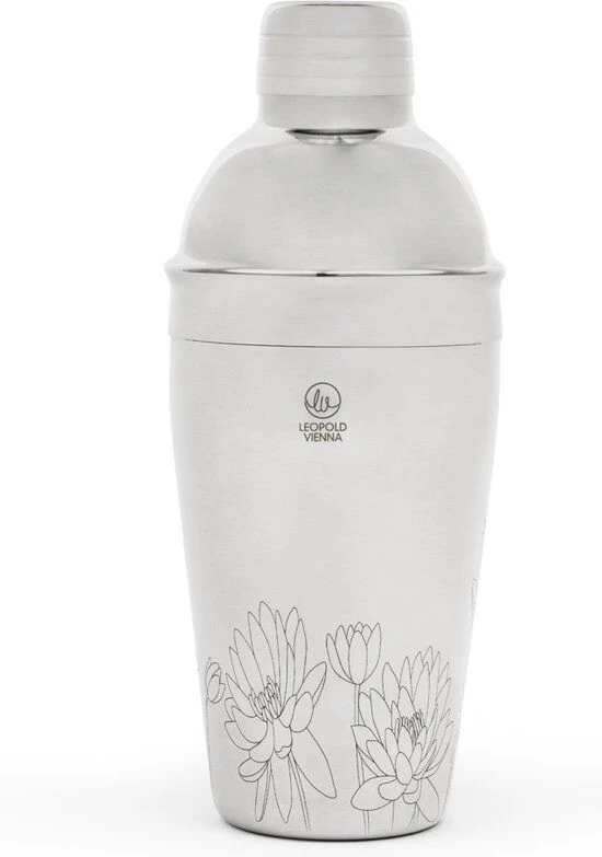 De Leopold Flowers Cocktailshaker is gemaakt van roestvrij staal en heeft een inhoud van 500 ml. Gebruik de shaker voor het shaken van de heerlijkste cocktails. De shaker is voorzien van een bloemenmotief en heeft een geïntegreerde RVS barzeef. De barzeef wordt gebruikt tijdens het uitschenken om onder andere ijsblokjes, citroenpitten, etcetera die niet in het glas mogen komen tegen te houden.