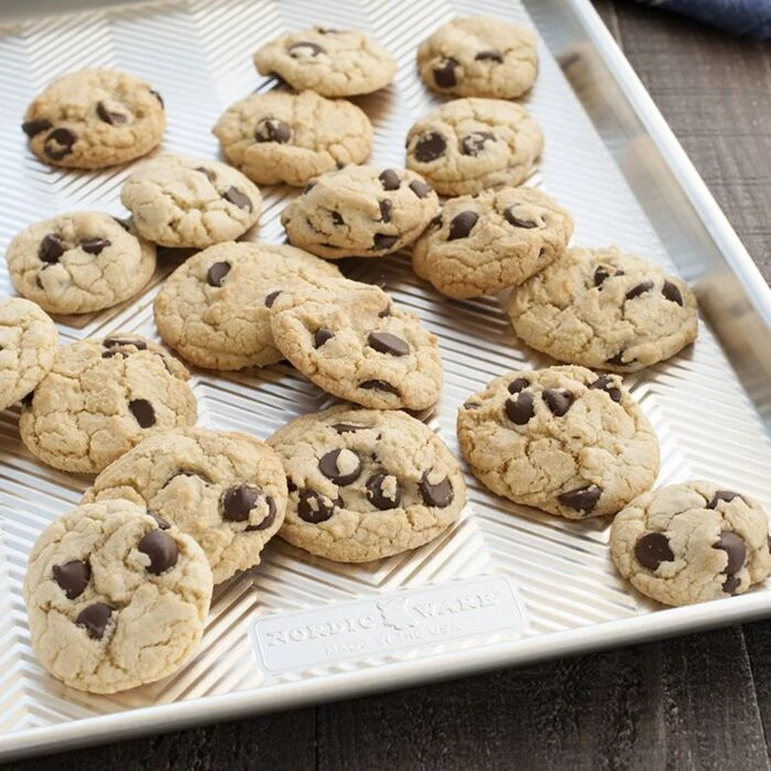 De Nordic Ware Prism Jelly Roll bakvorm is gemaakt van aluminium. De V-vormige ribbels in de bodem zorgen voor eenvoudige lossing van baksels en een maximale luchtstroom voor duurzaam bakken. De bakplaat is 40 x 28,5 x 2,5 cm en gebruikt u voor het bakken van koekjes en andere baksels.