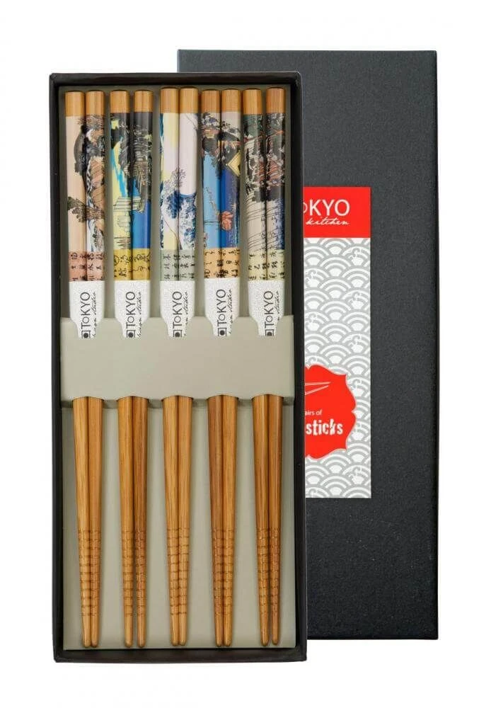 De Oldenhof eetstokjes zijn gemaakt van lichtbruin hout met diverse motieven en hebben een lengte van 22,5 cm. De stokjes komen in een luxe doosje met 5 sets van 2 eetstokjes. Gebruik de eetstokjes voor het eten van Aziatische gerechten als sushi of noedels.