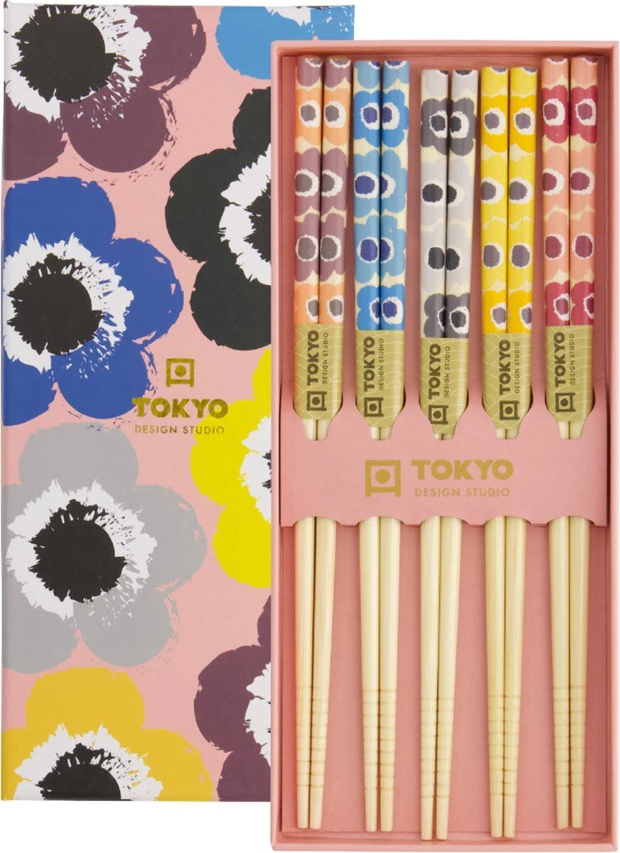 De Oldenhof eetstokjes zijn gemaakt van bruin hout met bloemenpatronen in verschillende kleuren. De stokjes hebben een lengte van 22,5 cm en komen in een luxe doosje met 5 sets van 2 eetstokjes. Gebruik de eetstokjes voor het eten van Aziatische gerechten als sushi of noedels.