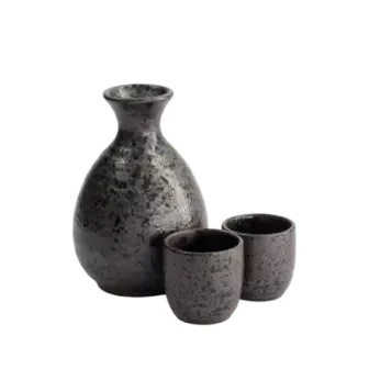 De Oldenhof Kuro Tetsusabi Sake set bestaat uit 3 delen. De set bevat een sake karaf van 300 ml en twee bekers van 50 ml. De set is gemaakt van porselein en is donker van kleur. Gebruik de set om cadeau te doen of om uw eigen servies uit te breiden.