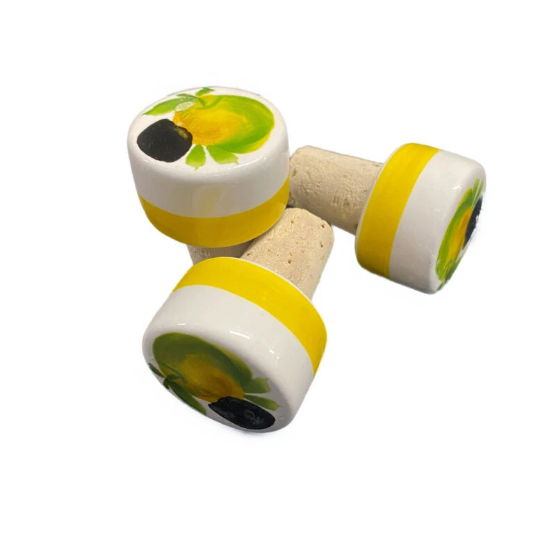 De Oldenhof wijnstop is gemaakt van aardewerk met kurk en heeft een opdruk van citroenen. Gebruik de wijnstop voor het afsluiten van wijnflessen voor het langer bewaren hiervan.