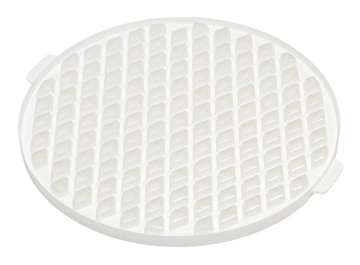 De Patisse ruitvorm vlaaistans of vlaairaster is vervaardigd uit wit kunststof, heeft een diameter van 30 cm. Met de deegnetsnijder voorziet u taarten en vlaaien van de authentieke ruiten vlaai topping, zoals u deze kent van de kersenvlaai.