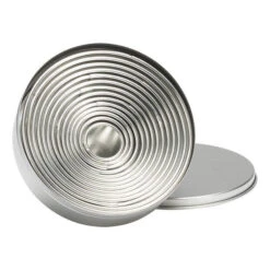 Deze set van Patisse uitsteekvormen bestaat uit 14 roestvrij stalen uitsteekvormpjes in 14 verschillende maten. Zo is er altijd een maat bij de hand die je nodig hebt. De kleinste ring heeft een doorsnede van ongeveer 2,5 cm, de grootste heeft een doorsnede van ongeveer 12 cm. Gebruik de uitsteekvormpjes om deeg, rolfondant of marsepein uit te snijden. De uitsteekvormen hebben een hoogte van 4 cm en zijn allemaal rond.