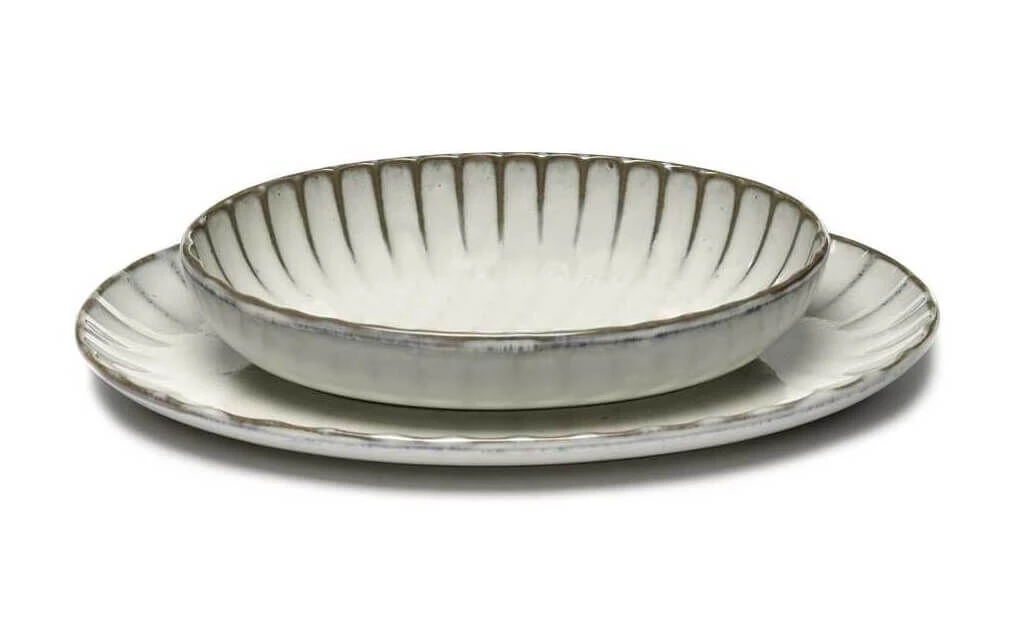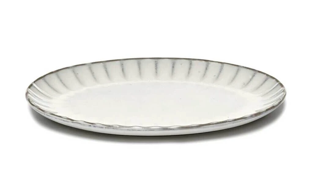 Het ovale bord S van Serax INKU heeft een diameter van 25 x 17,5 cm en is 1,7 cm hoog, en is aan de rand voorzien van een decoratief ribbelpatroon. Het bord is gemaakt van steengoed (aardewerk) en is wit geglazuurd. Gebruik voor het serveren van gerechten.