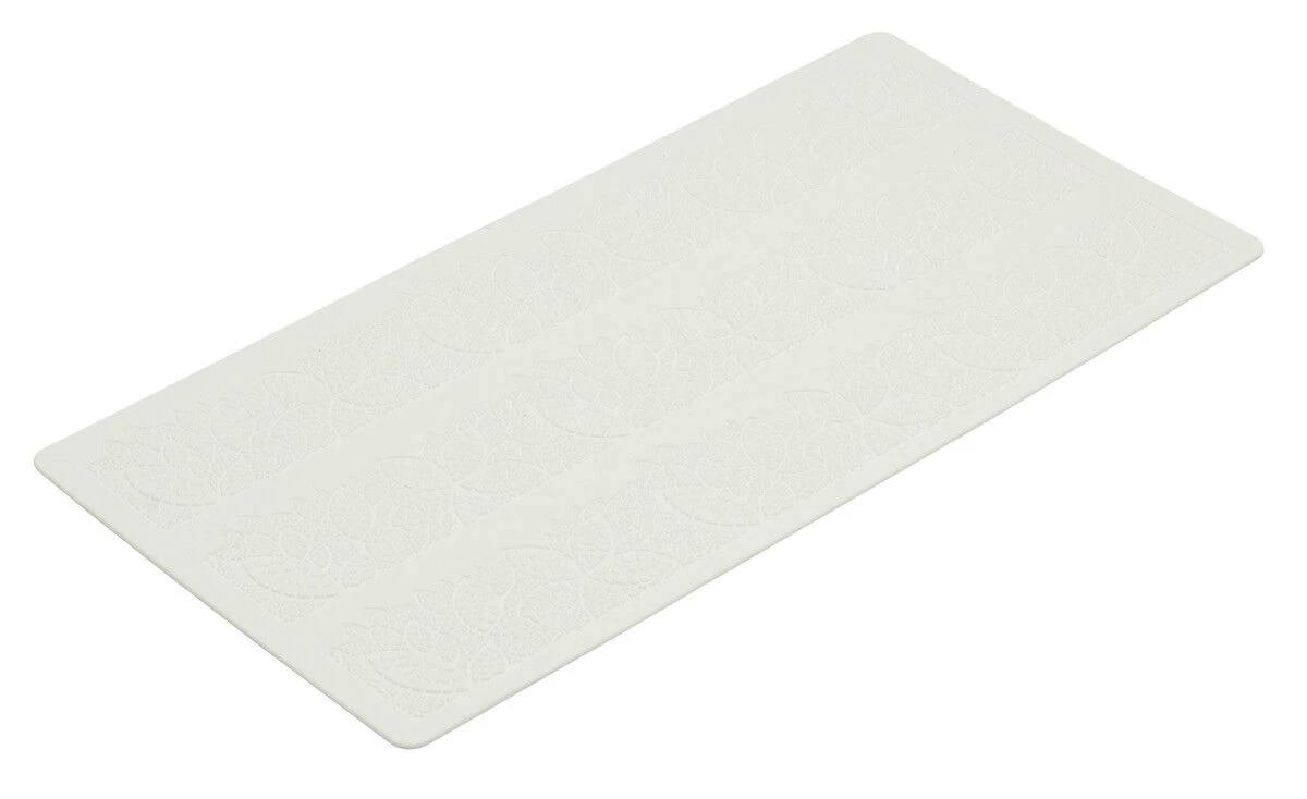De Silikomart Wonder Cakes Tricot Decor taartdecoratie heeft een leaves-patroon waarmee u cupcakes en taarten kunt versieren. De vorm is vervaardigd van wit silicone en meet 40 x 20 cm.