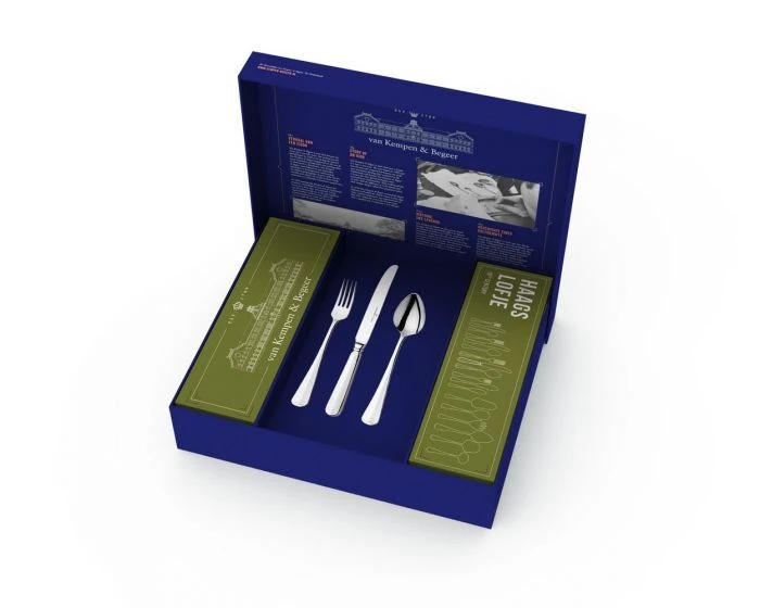 Het Van Kempen & Begeer Haags Lofje bestek is vervaardigd uit hoogwaardig 18/10 gepolijst roestvrij staal. Kenmerkend zijn de rondingen in de grepen. Deze aanvulset bestaat uit 18 delen en is daarmee geschikt voor 3 personen.