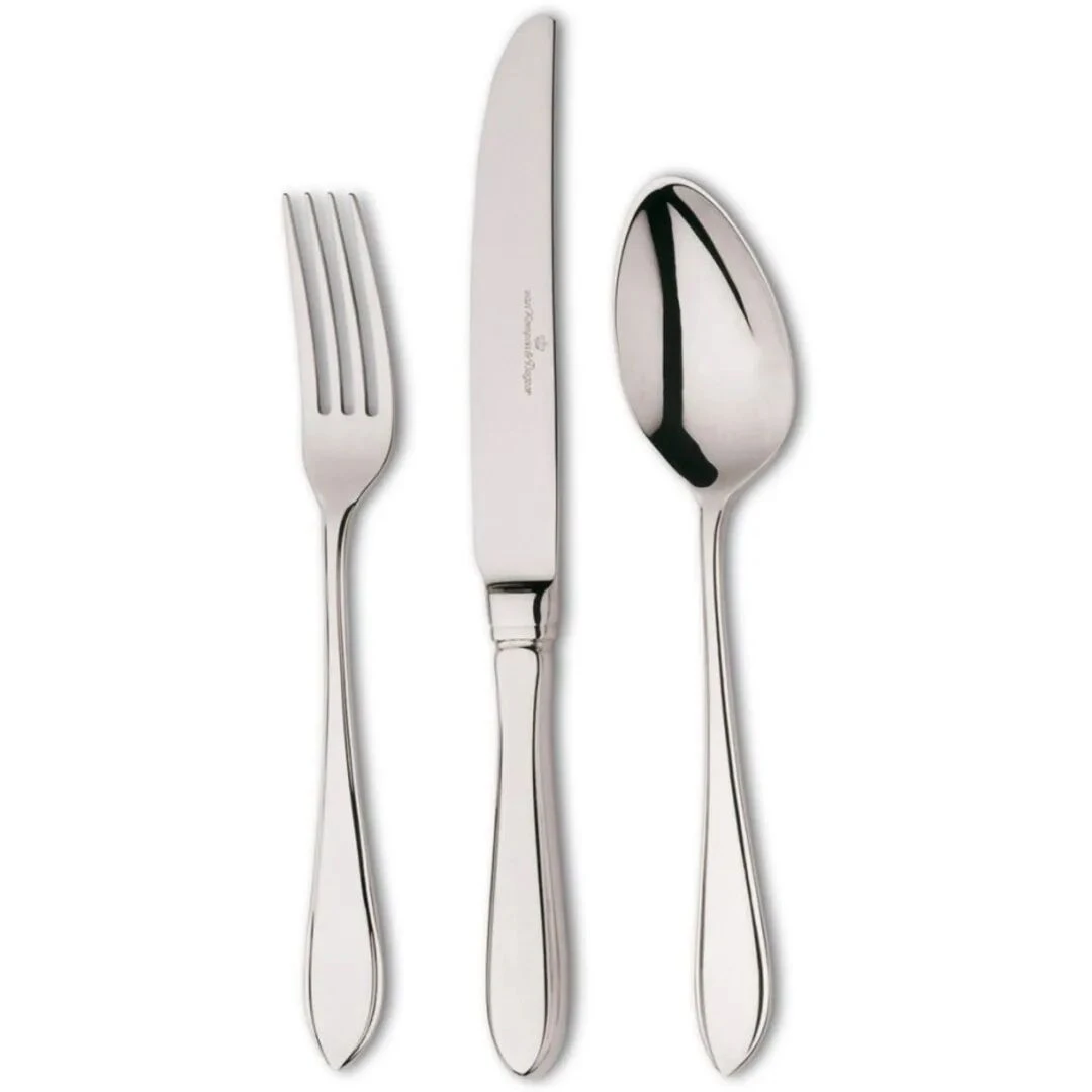 Het Van Kempen & Begeer Puntfilet dessertcouvert is vervaardigd uit roestvrij staal. Kenmerkend zijn de lelievormige grepen. De bestekset is 3-delig en daarmee geschikt voor 1 persoon. De set bestaat uit een dessertvork, een dessertmes en een dessertlepel.